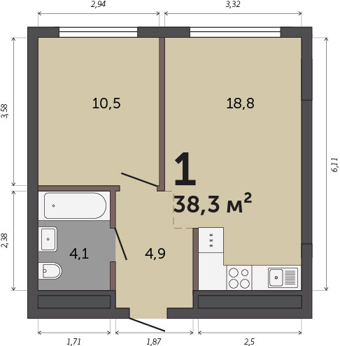 38.30 м² | 26 - 30 эт.