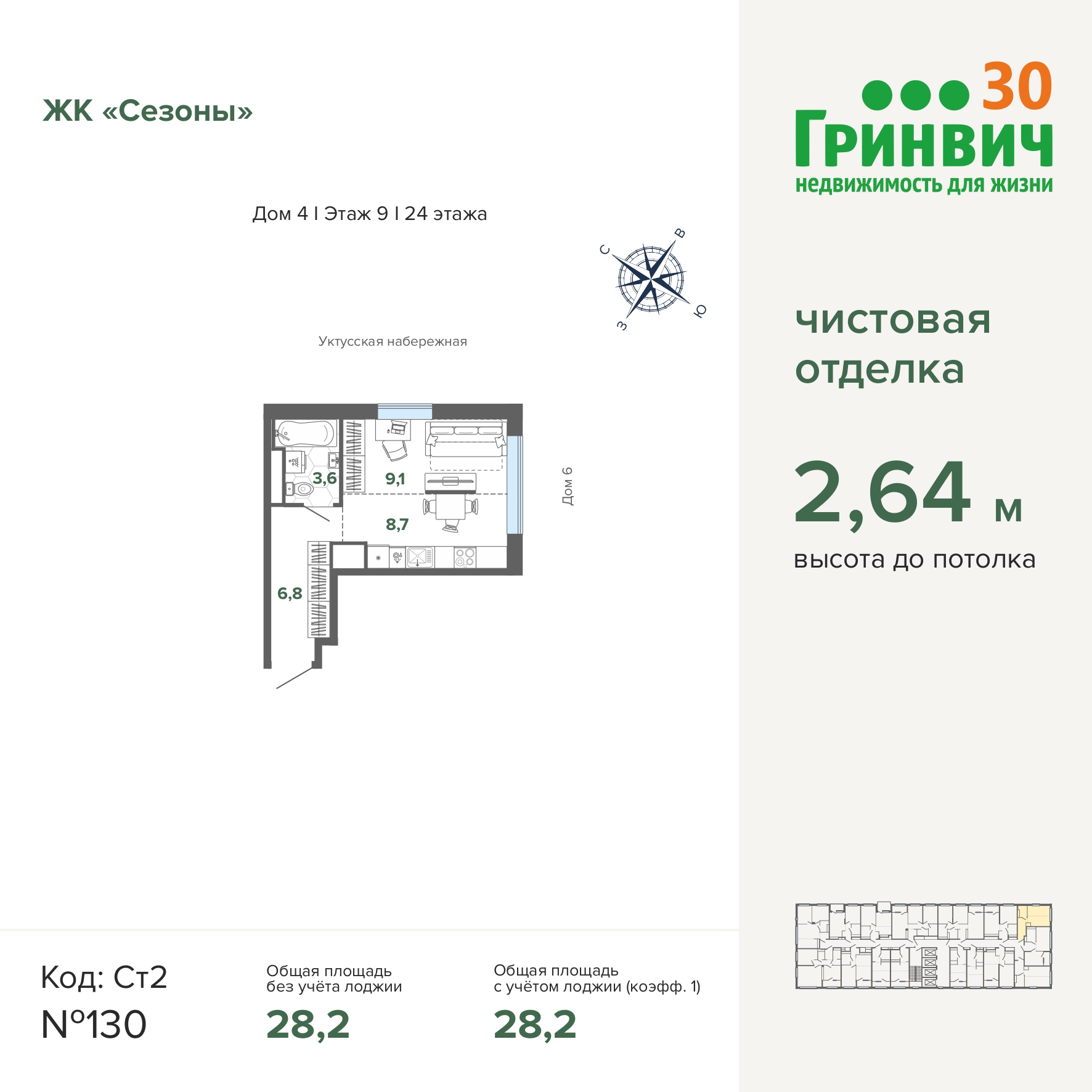 28.19 м² | 9 - 24 эт.