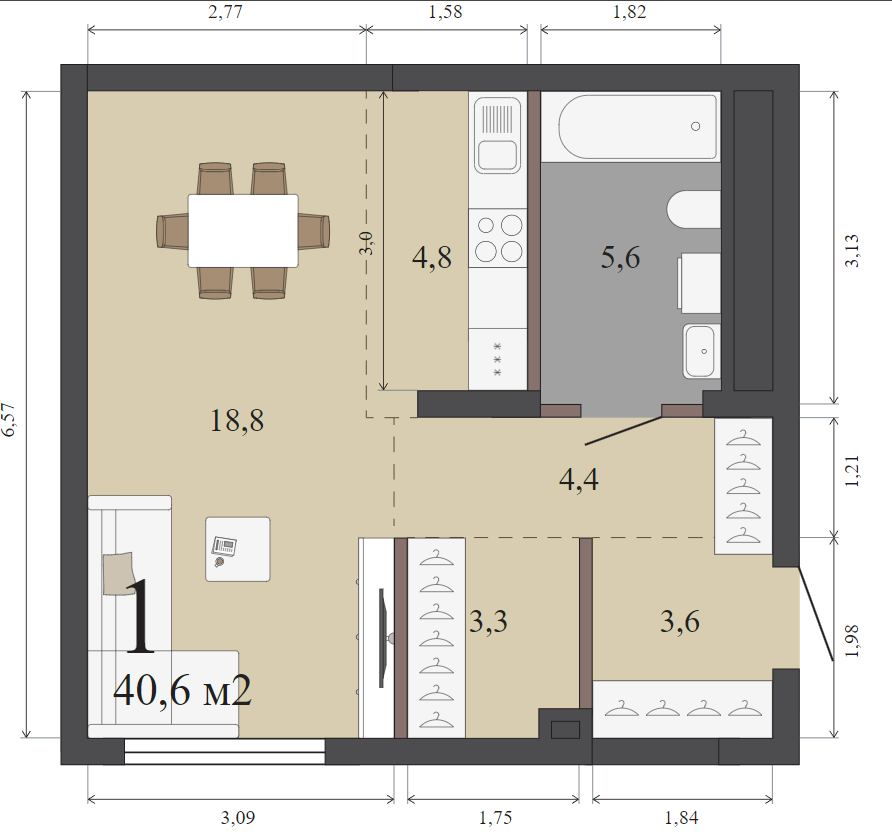 40.60 м²