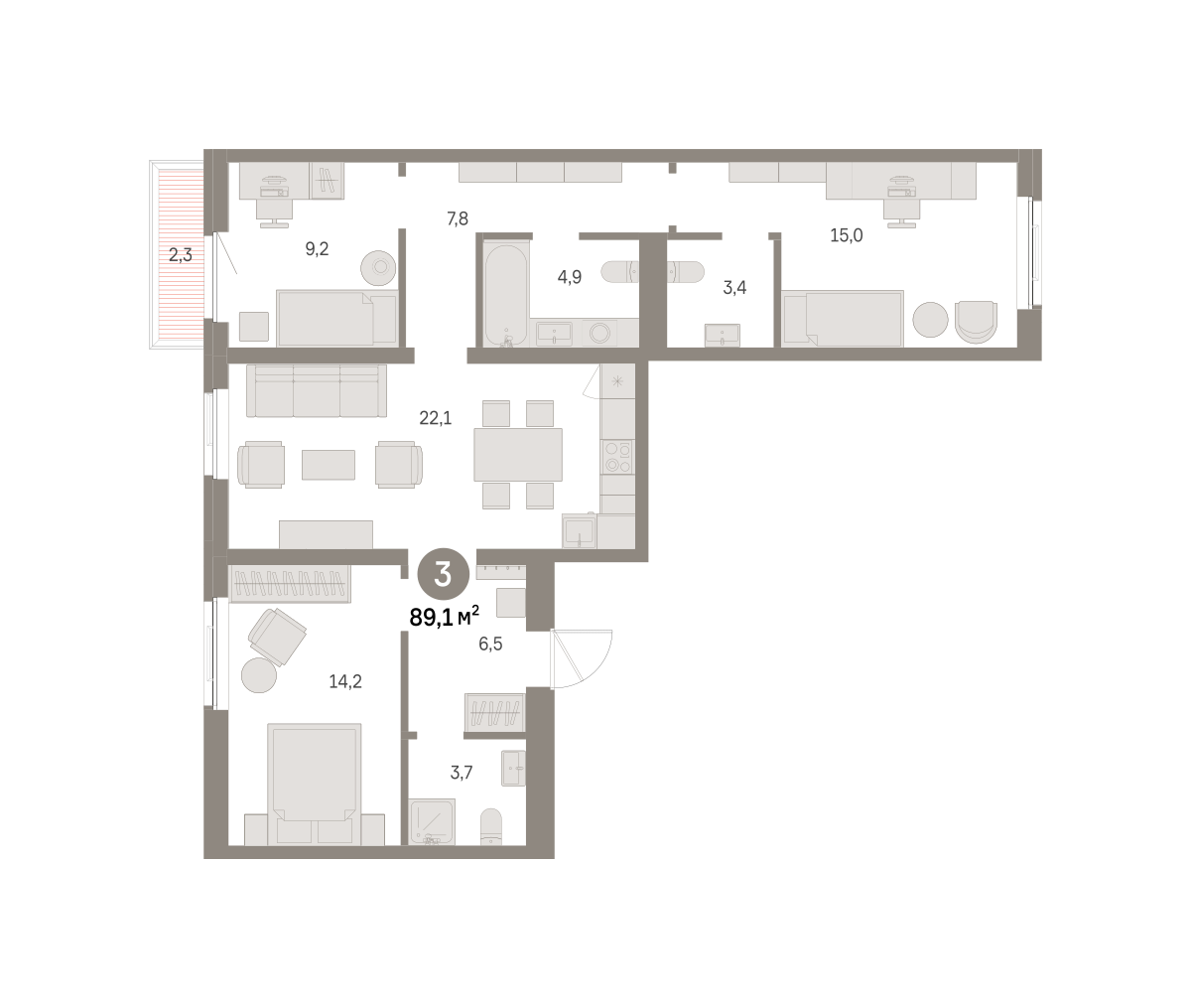 3-к квартира | 88.50 м² | 10 - 21 эт.
