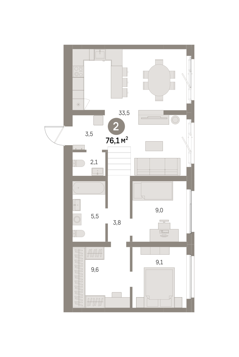 Продаётся с кладовой. Квартира с кухней-гостиной и двумя спальнями в районе Шишимская горка. Особенности планировки: предчистовая отделка, стартовая цена. № квартиры в нашей базе: ШГР06-Ж1.1.4.