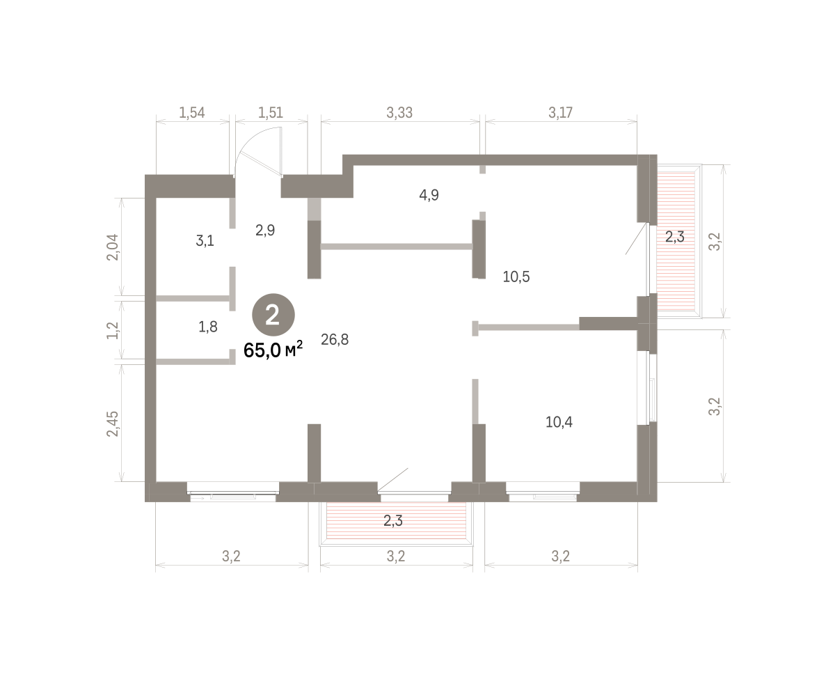 65.00 м² | 6 - 16 эт.