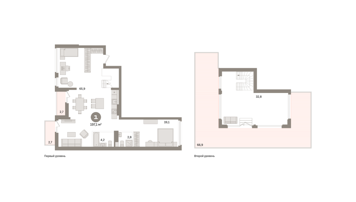 Квартира с кухней-гостиной и тремя спальнями в Южных кварталах. Особенности планировки: балкон, без отделки, вид во двор, второй санузел, двухуровневая, летняя кухня на крыше, окна на две стороны, потолки 3 м и выше, разнесённые спальни, свободная планировка, терраса на крыше.