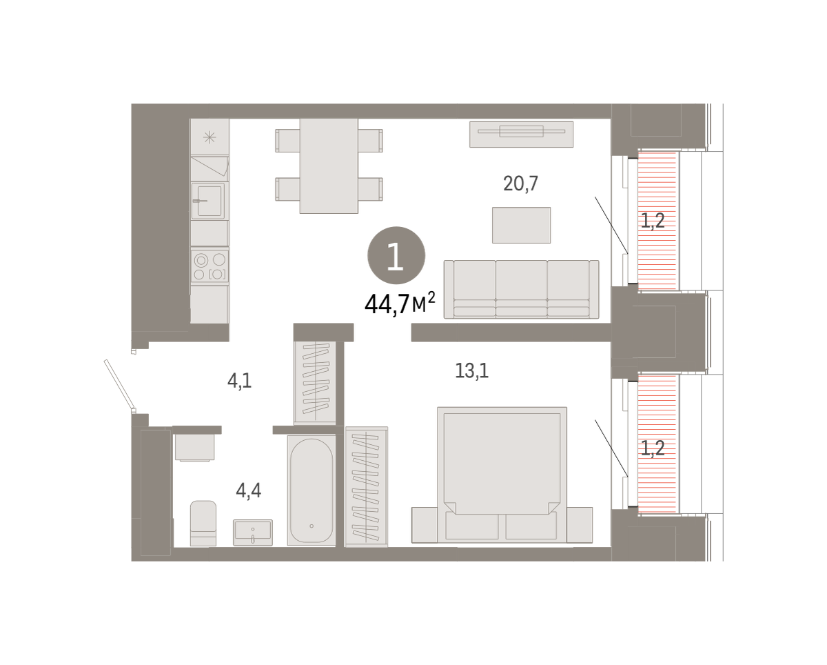 Продаётся с кладовой. Квартира с кухней-гостиной и одной спальней в квартале «На Некрасова». Особенности планировки: вид во двор, лоджия, предчистовая отделка. № квартиры в нашей базе: НКР02-Ж1.21.6.