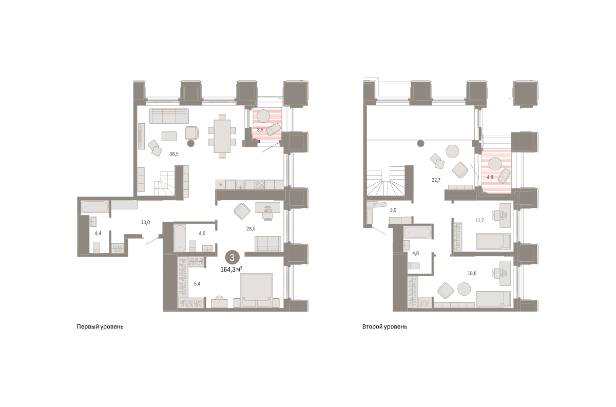 Квартира с кухней-гостиной и тремя спальнями в квартале «На Некрасова». Особенности планировки: вид во двор, второй санузел, второй свет, лоджия, мастер-спальня, окно в коридоре, постирочная, предчистовая отделка, разнесённые спальни.