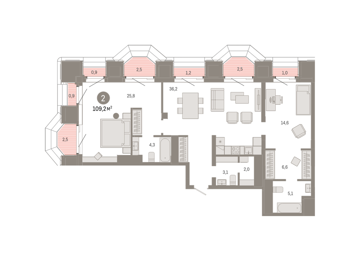 110.00 м² | 21 - 24 эт.