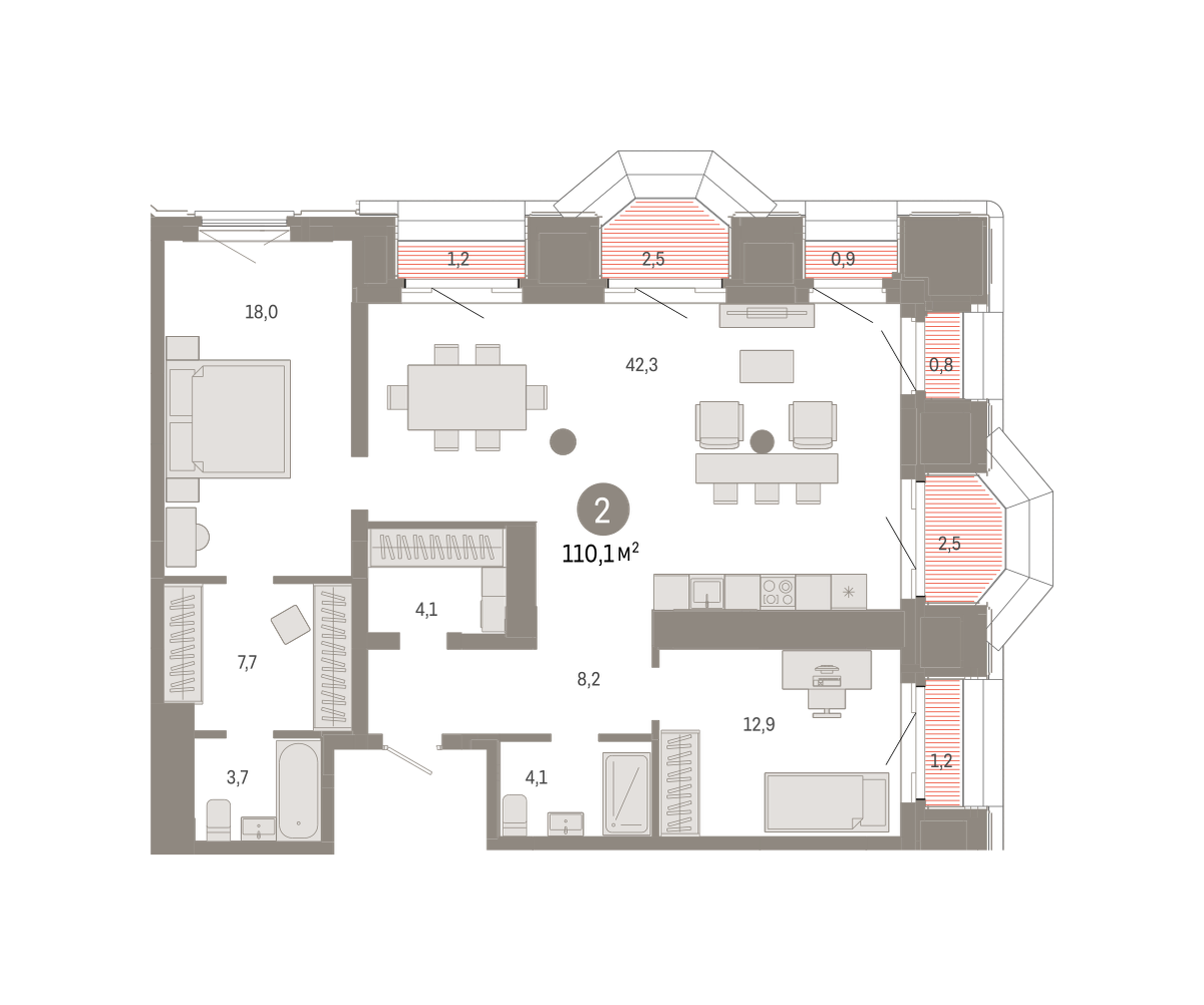 110.00 м² | 21 - 24 эт.