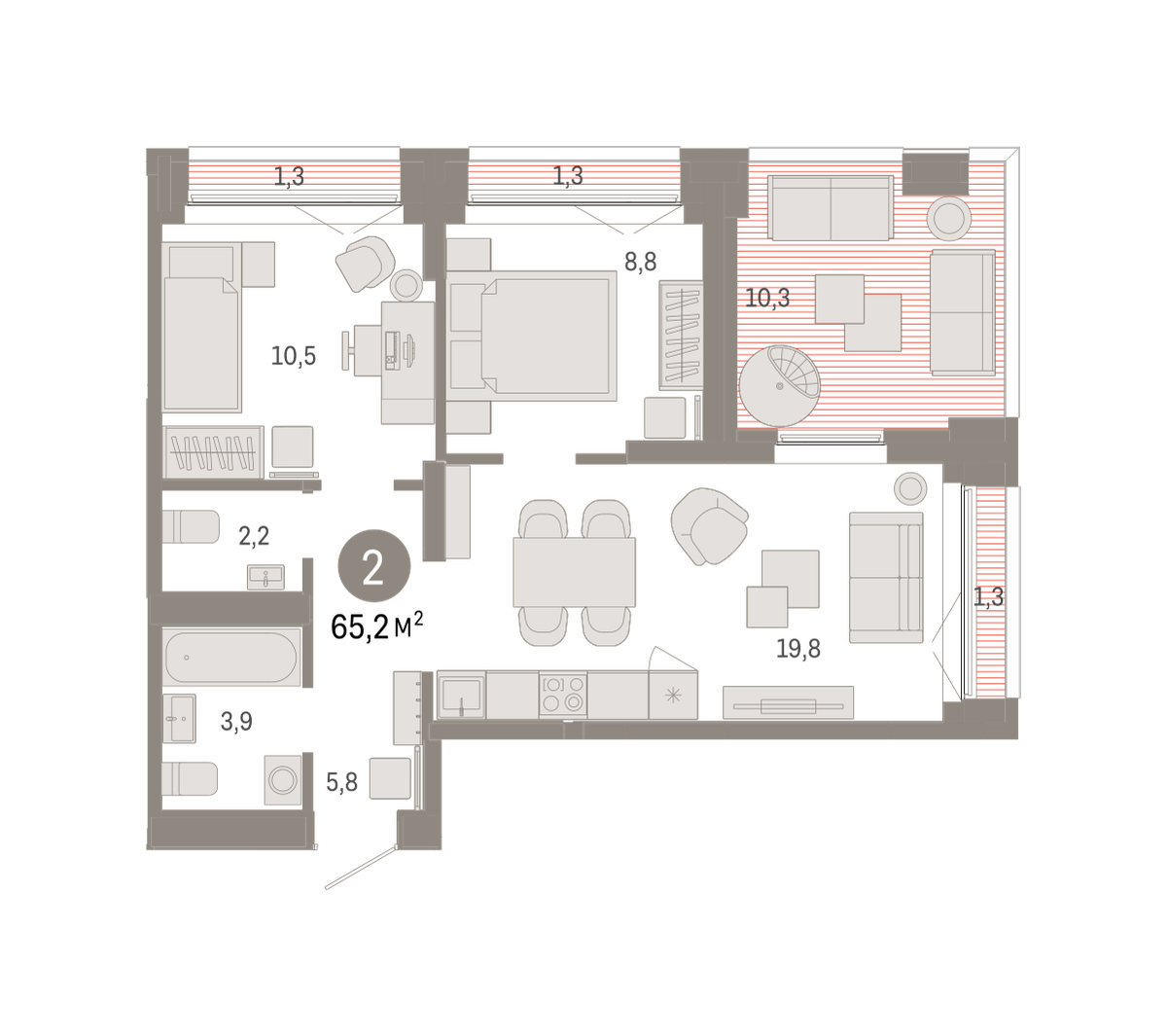 Продаётся с кладовой. Квартира с кухней-гостиной и двумя спальнями в районе Шишимская горка. Особенности планировки: второй санузел, предчистовая отделка, терраса на крыше. № квартиры в нашей базе: ШГР16-Ж5.15.1.