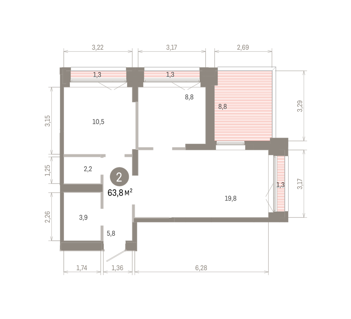 63.00 м² | 16 - 16 эт.