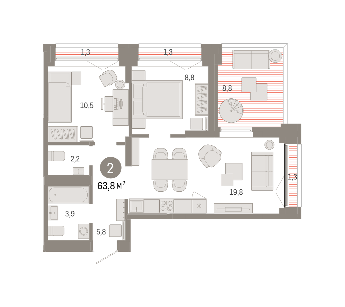 Продаётся с кладовой. Квартира с кухней-гостиной и двумя спальнями в районе Шишимская горка. Особенности планировки: второй санузел, предчистовая отделка, разнесённые спальни, терраса на крыше. № квартиры в нашей базе: ШГР16-Ж5.16.1.