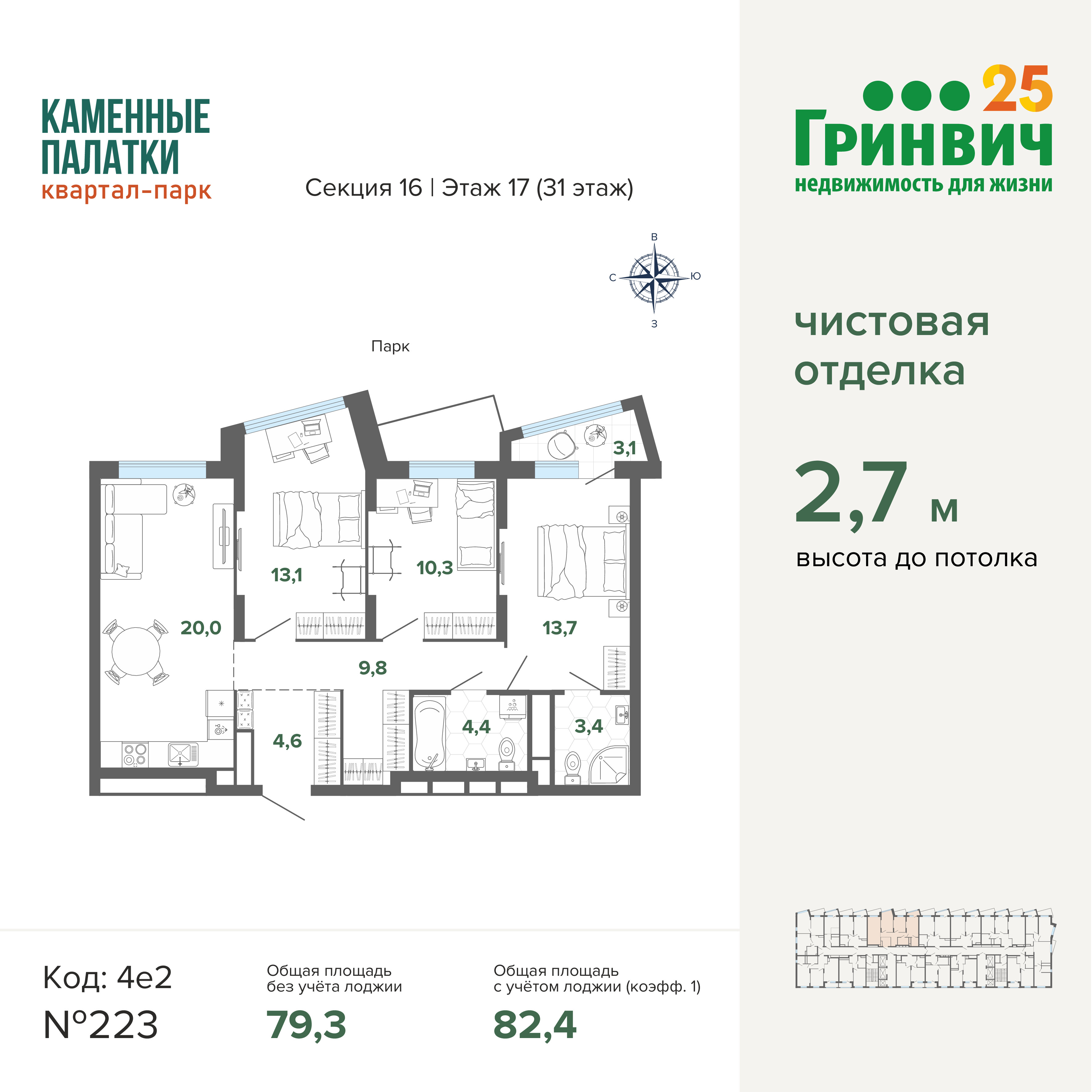 • Высокие потолки (2,7 м);