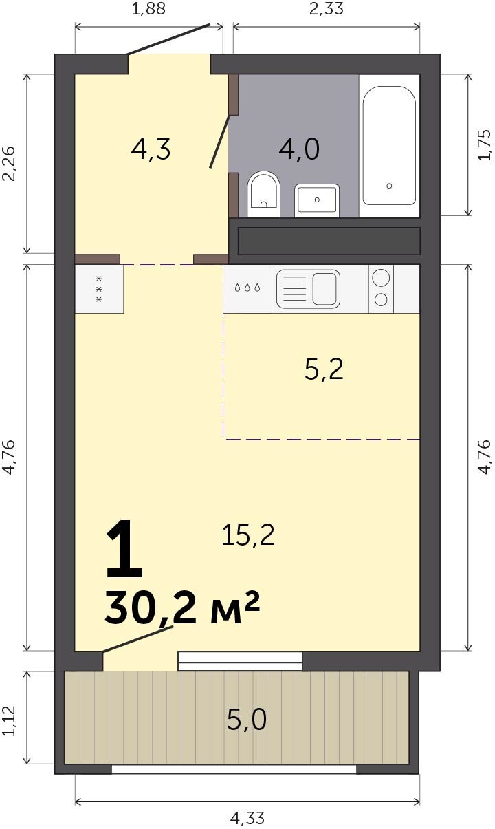 29.90 м² | 26 - 30 эт.
