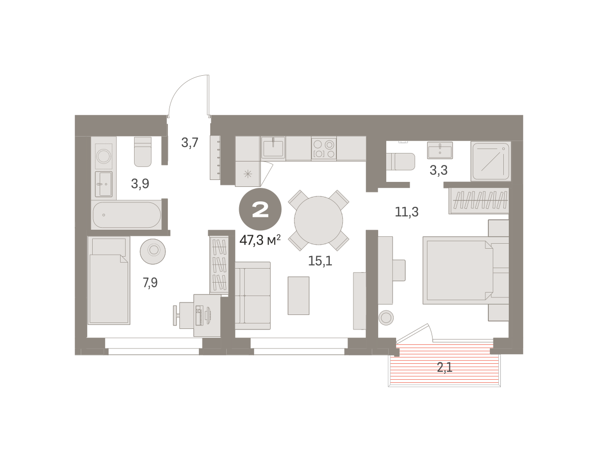 Продаётся с кладовой. Квартира с кухней-гостиной и двумя спальнями в Бруснике в Академическом. Особенности планировки: балкон, второй санузел, мастер-спальня, предчистовая отделка, разнесённые спальни. № квартиры в нашей базе: АКД04-Ж3.9.2.