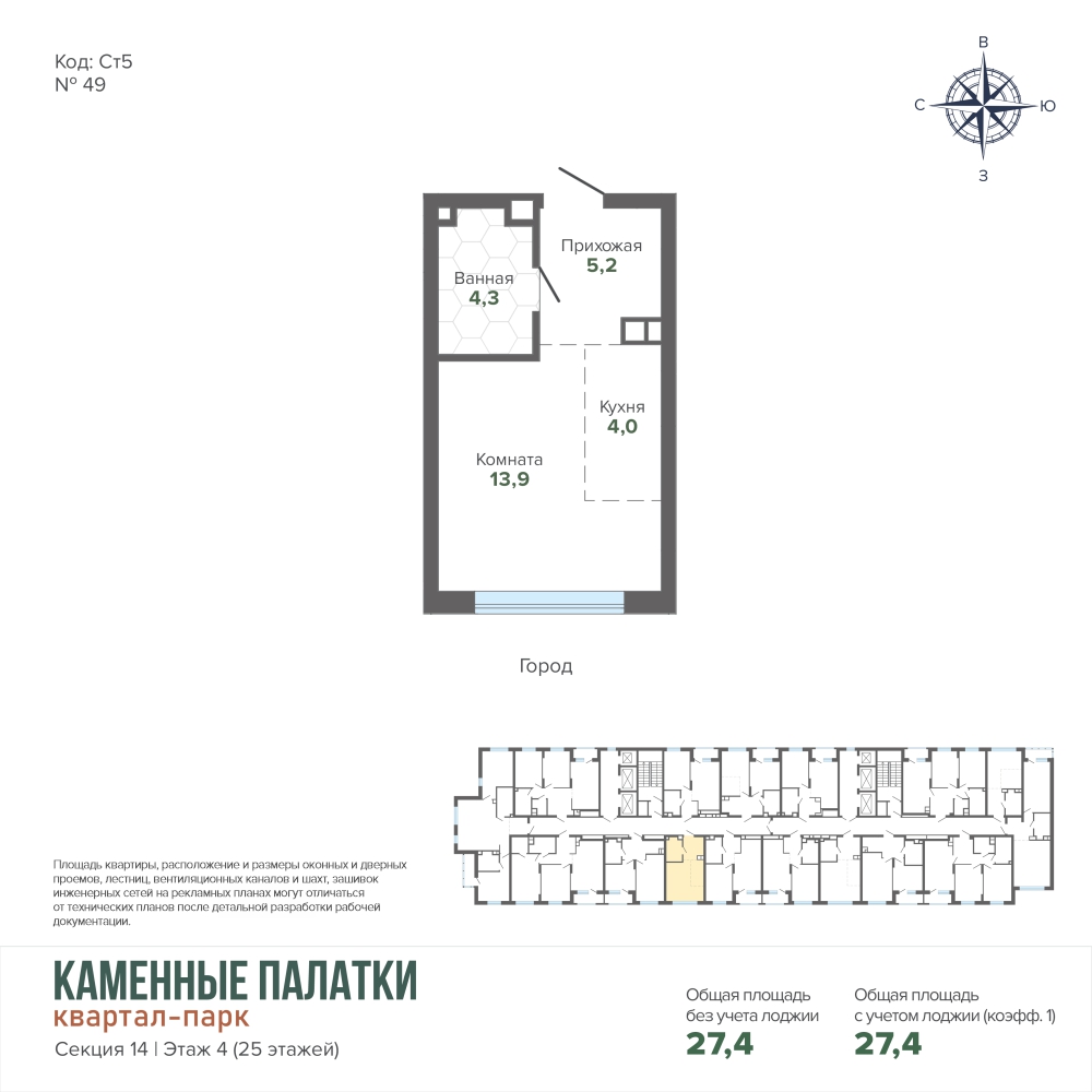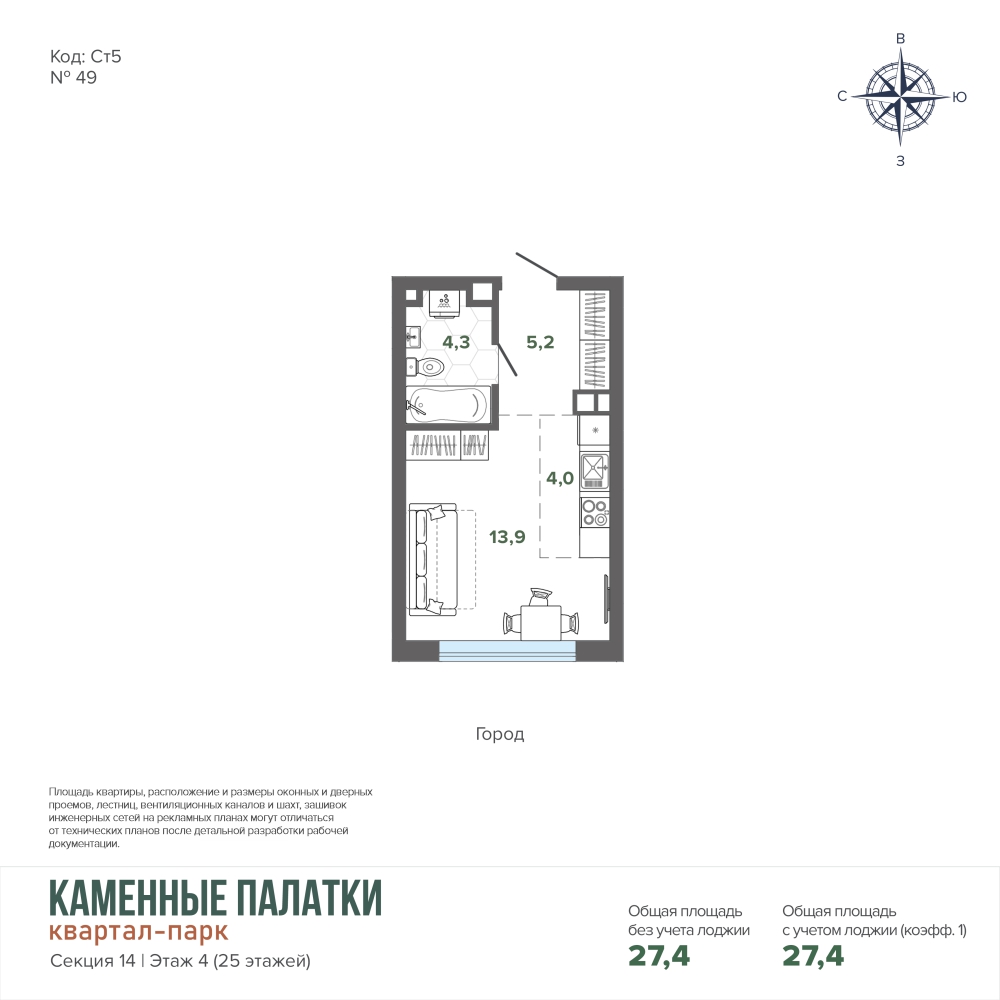 27.39 м² | 4 - 25 эт.