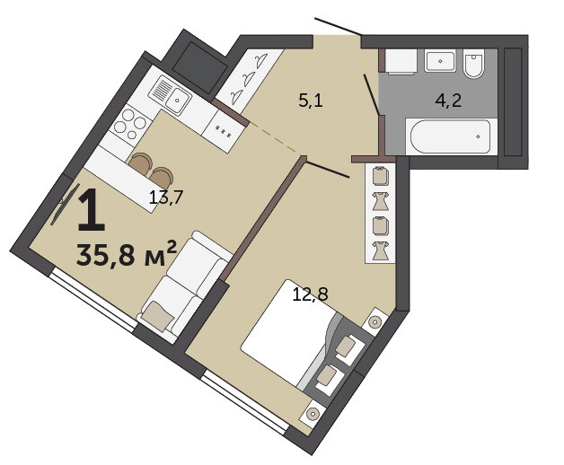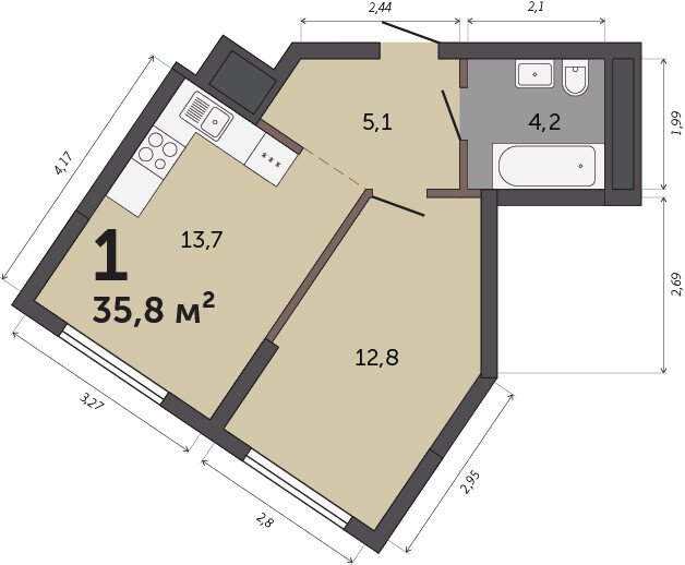 35.80 м² | 26 - 30 эт.