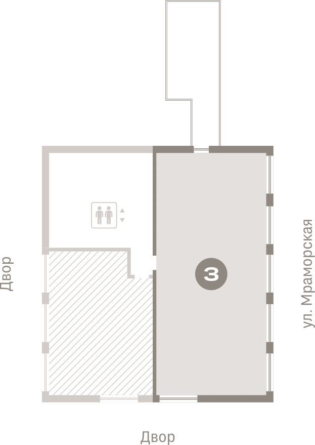Квартира с кухней-гостиной и тремя спальнями в районе Шишимская горка. Особенности планировки: без отделки, вид во двор, второй санузел, терраса на крыше.