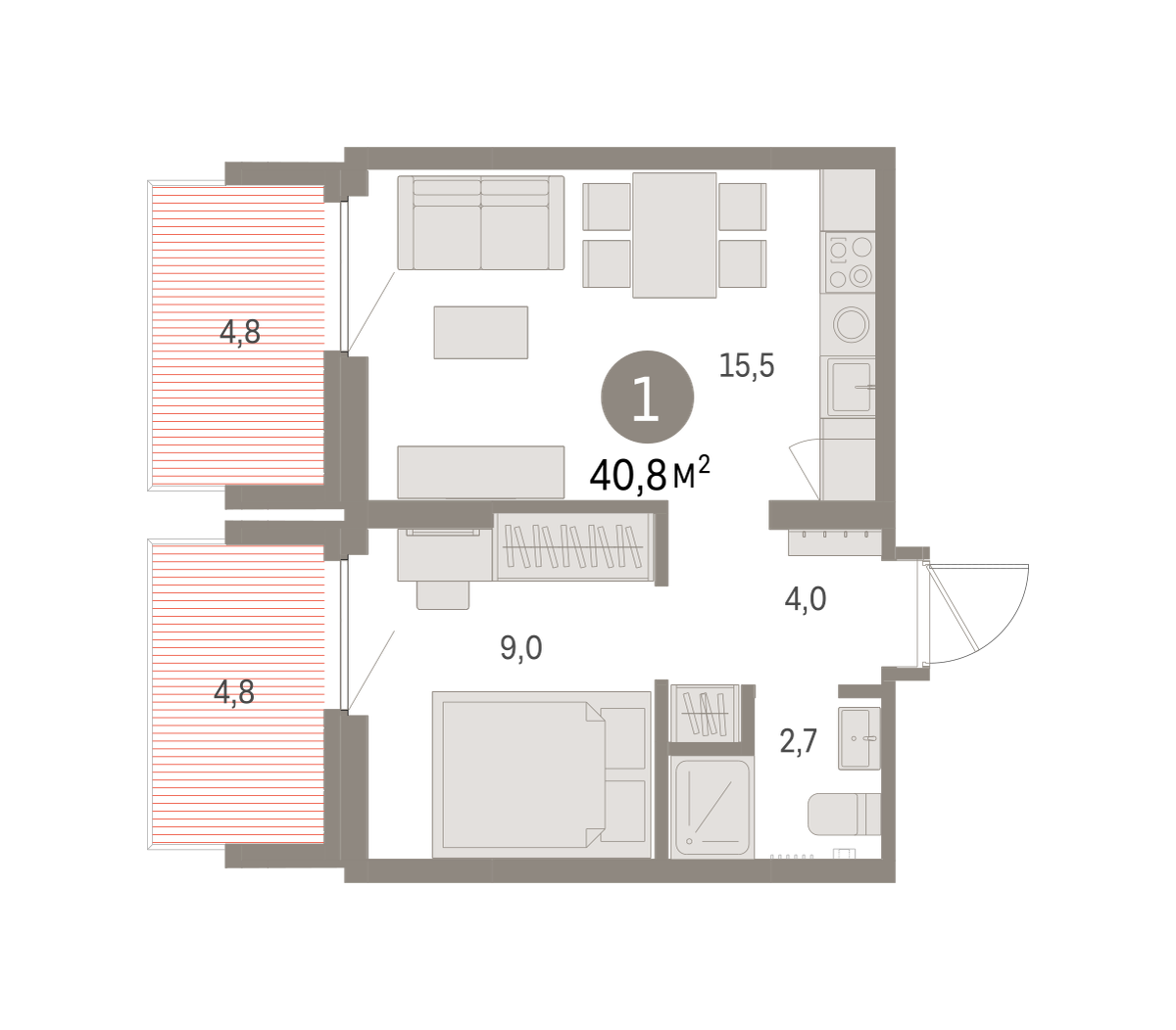 Продаётся с кладовой. Квартира с кухней-гостиной и одной спальней в Бруснике в Академическом. Особенности планировки: балкон, предчистовая отделка. № квартиры в нашей базе: АКД05-Ж7.6.5.
