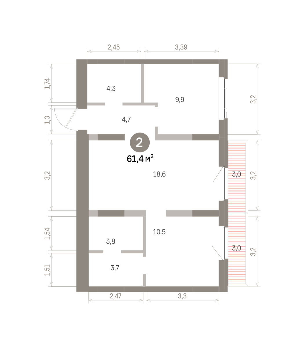 61.30 м² | 2 - 19 эт.