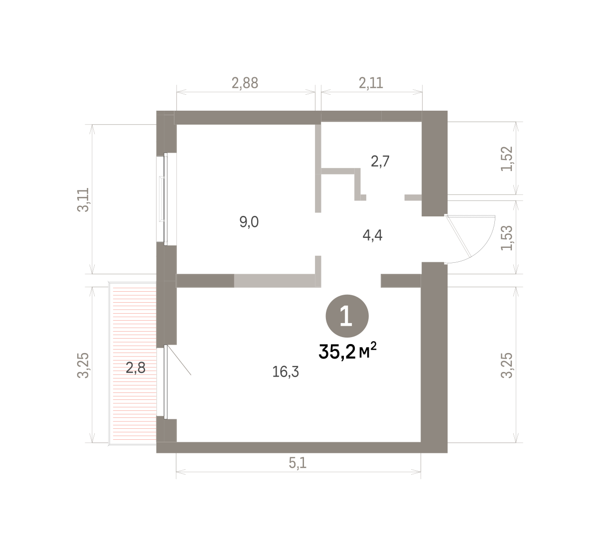 Продаётся с кладовой. Квартира с кухней-гостиной и одной спальней в районе Шишимская горка. Особенности планировки: балкон, вид во двор, второй свет, предчистовая отделка. № квартиры в нашей базе: ШГР06-Ж1.5.1.