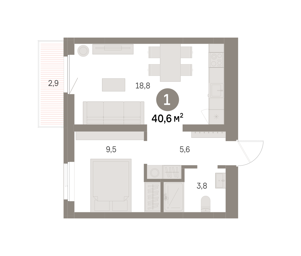 Продаётся с кладовой. Квартира с кухней-гостиной и одной спальней в районе Шишимская горка. Особенности планировки: балкон, предчистовая отделка. № квартиры в нашей базе: ШГР06-Ж4.5.5.