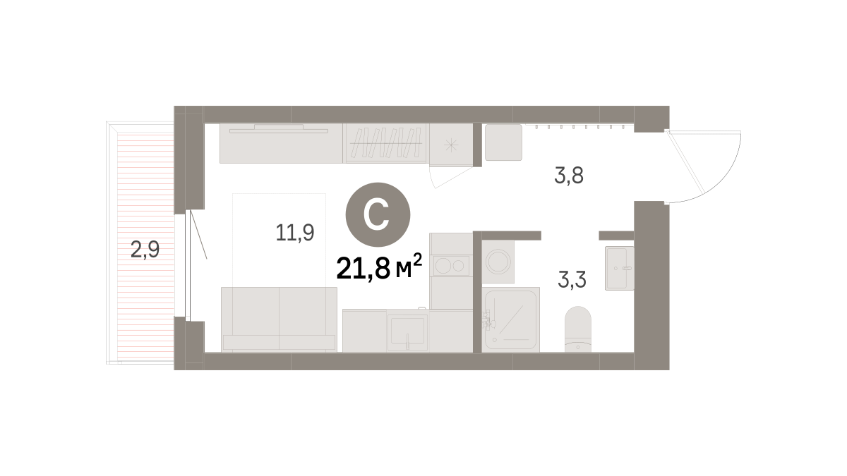 Студия в районе Шишимская горка. Особенности планировки: балкон, предчистовая отделка. № квартиры в нашей базе: ШГР06-Ж5.5.5.