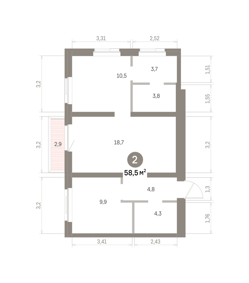 58.00 м² | 4 - 9 эт.