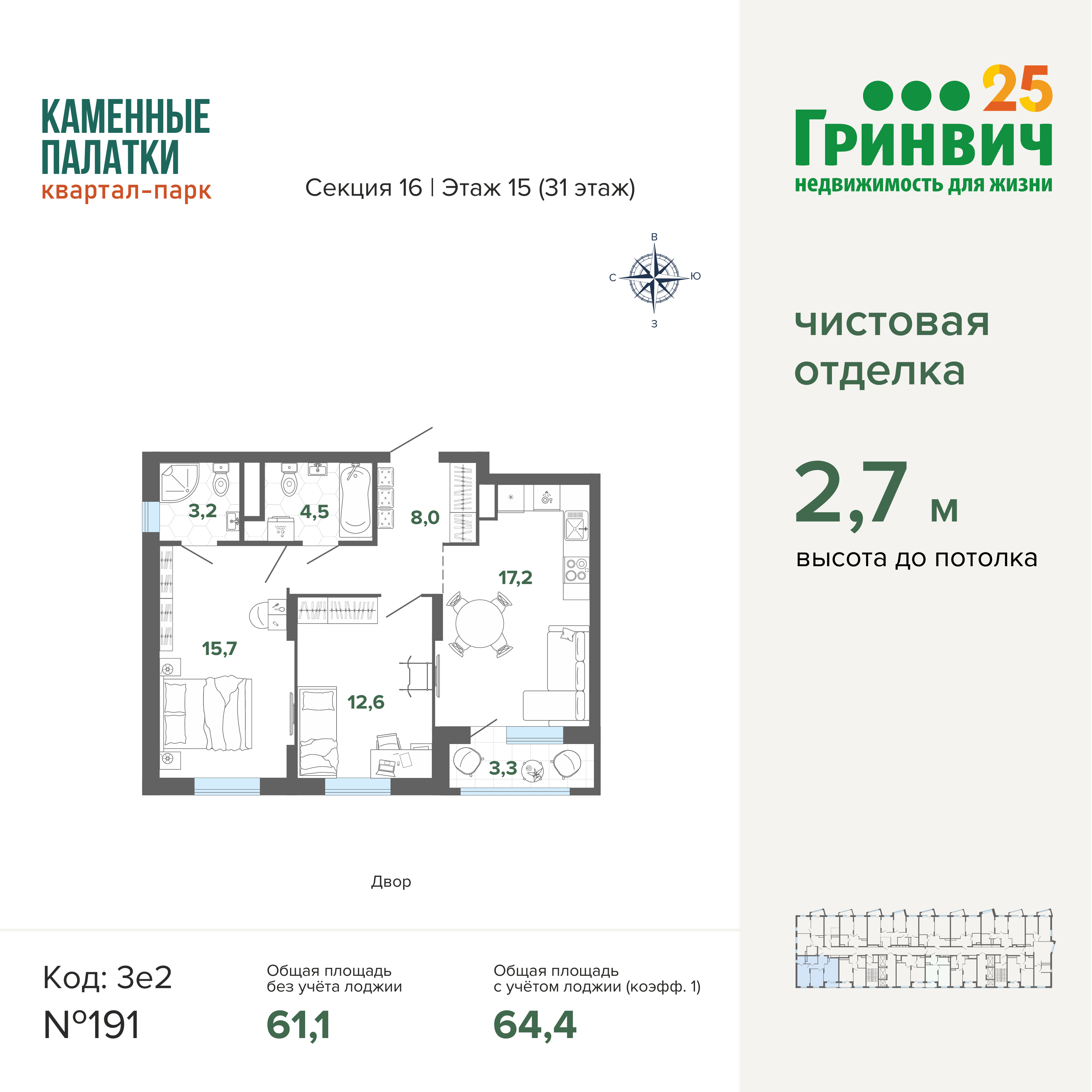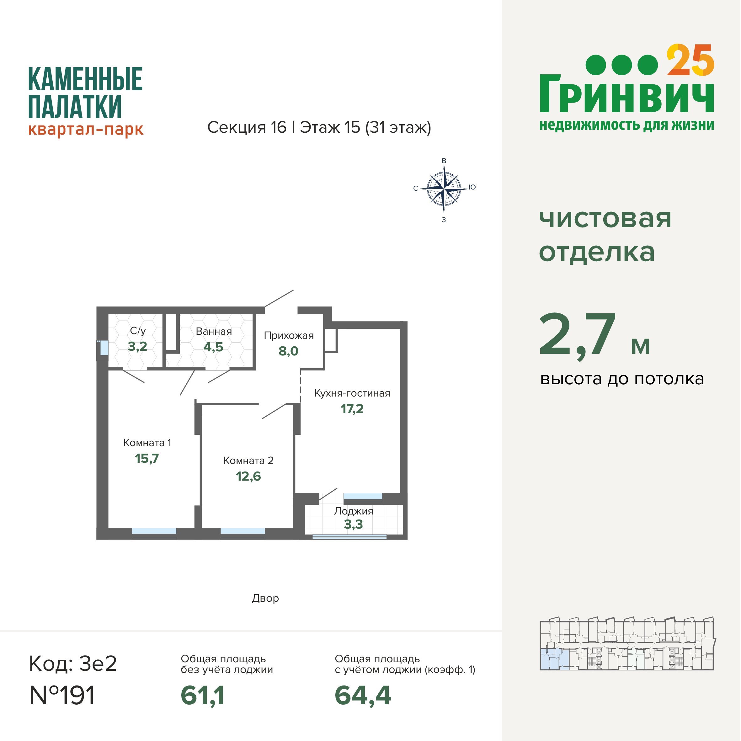 Продается квартира в современном Квартал-парке «Каменные Палатки» – новый жилой комплекс комфорт-класса расположен на границе микрорайонов ЖБИ и Втузгородок, в 15 минутах от центра города рядом с природным парком Каменные палатки и озером Шарташ.<br><br>В продаже 4 очередь (секция 16).<br>Срок сдачи – 4 квартал 2025 года<br><br>Преимущества квартир:<br><br>• Высокие потолки (2,7 м);<br>• Качественная чистовая отделка: входные двери, ламинат, обои под покраску, установлена сантехника;<br>• Горизонтальная разводка систем отопления – свободные стены;<br>• Счетчики на э/э, воду и тепло – ежемесячная экономия на коммунальных платежах;<br>• Сделаны входы для слаботочных сетей (интернет, телефон, цифровое телевидение).<br><br>Преимущества дома:<br>• Просторная закрытая придомовая территория;<br>• Прямо из комплекса выход в природный парк Каменные Палатки;<br>• Просторная наземная парковка и подземный паркинг;<br>• Муниципальный детский сад в 3й очереди на 200 мест;<br>• В жилом комплексе расположены ЖизньМарт, Монетка, Пятёрочка, пункты выдачи ЯндексМаркет, Ozon и Wildberries. Детский оздоровительный центр и кинологический клуб. <br>• В нескольких минутах от дома расположены: гимназия № 45, пять детских садов, гипермаркет «Мегамарт».
