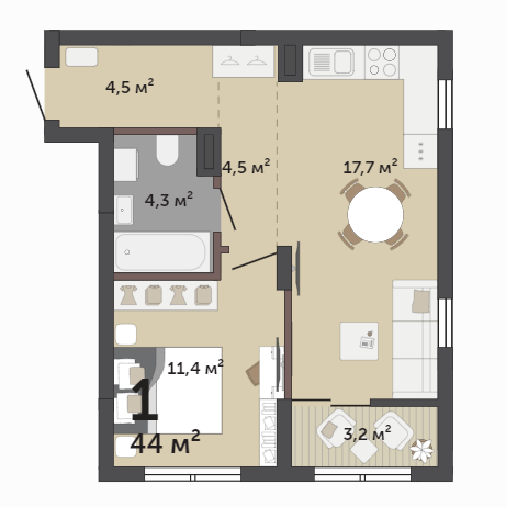44.00 м² | 4 - 9 эт.