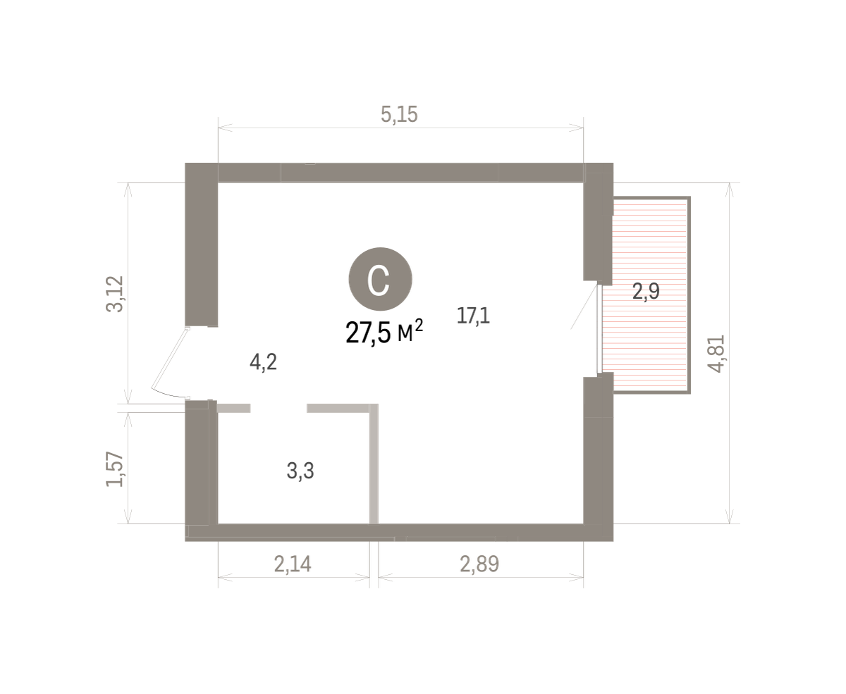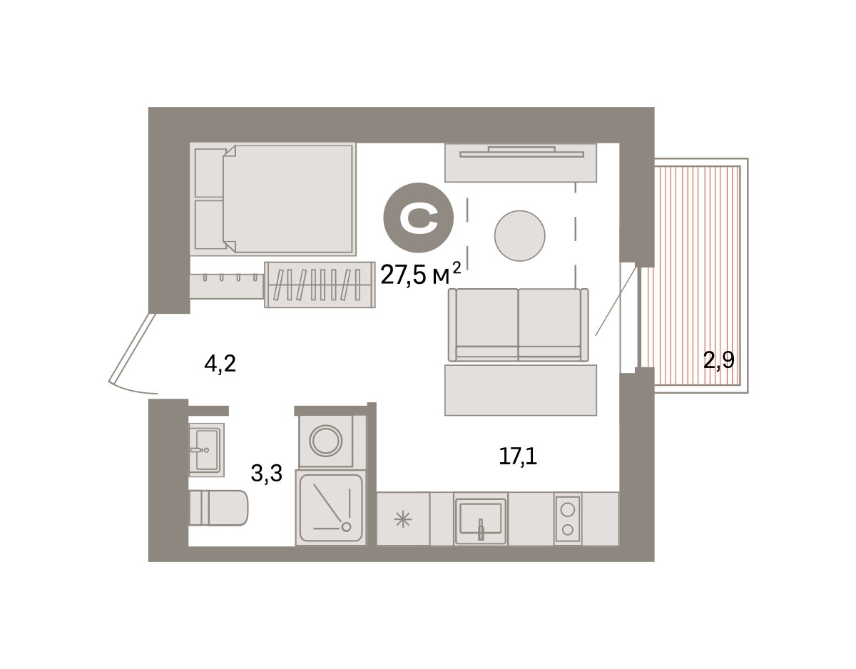 Студия в квартале «Депо». Особенности планировки: балкон, вид во двор, предчистовая отделка. № квартиры в нашей базе: ДЕП07-Ж6.7.9.