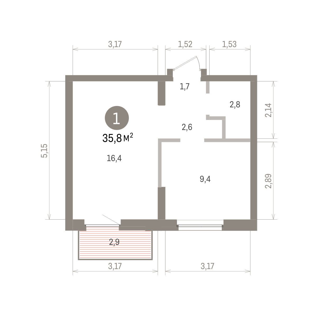 Квартира с кухней-гостиной и одной спальней в квартале «Депо». Особенности планировки: балкон, вид во двор, предчистовая отделка. № квартиры в нашей базе: ДЕП07-Ж3.7.1.