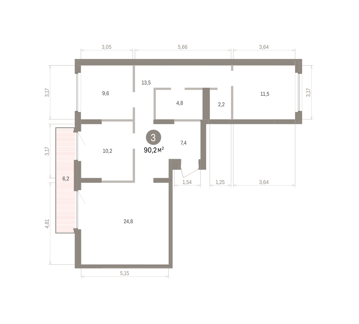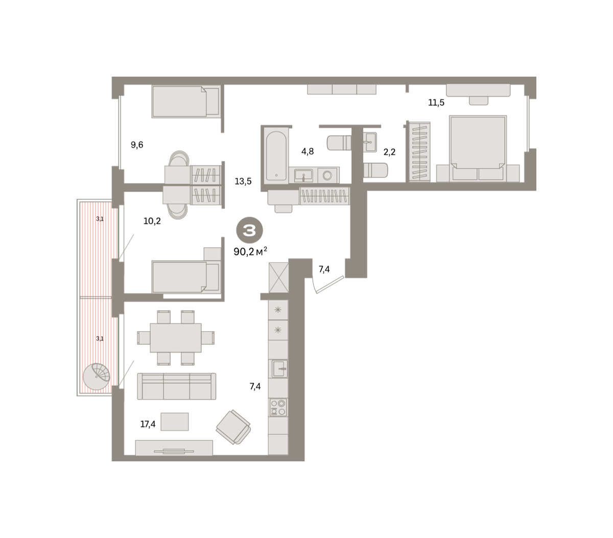 Продаётся с кладовой. Квартира с кухней-гостиной и тремя спальнями в квартале «Депо». Особенности планировки: балкон, вид во двор, второй санузел, окна на две стороны, предчистовая отделка, разнесённые спальни. № квартиры в нашей базе: ДЕП07-Ж4.9.1.