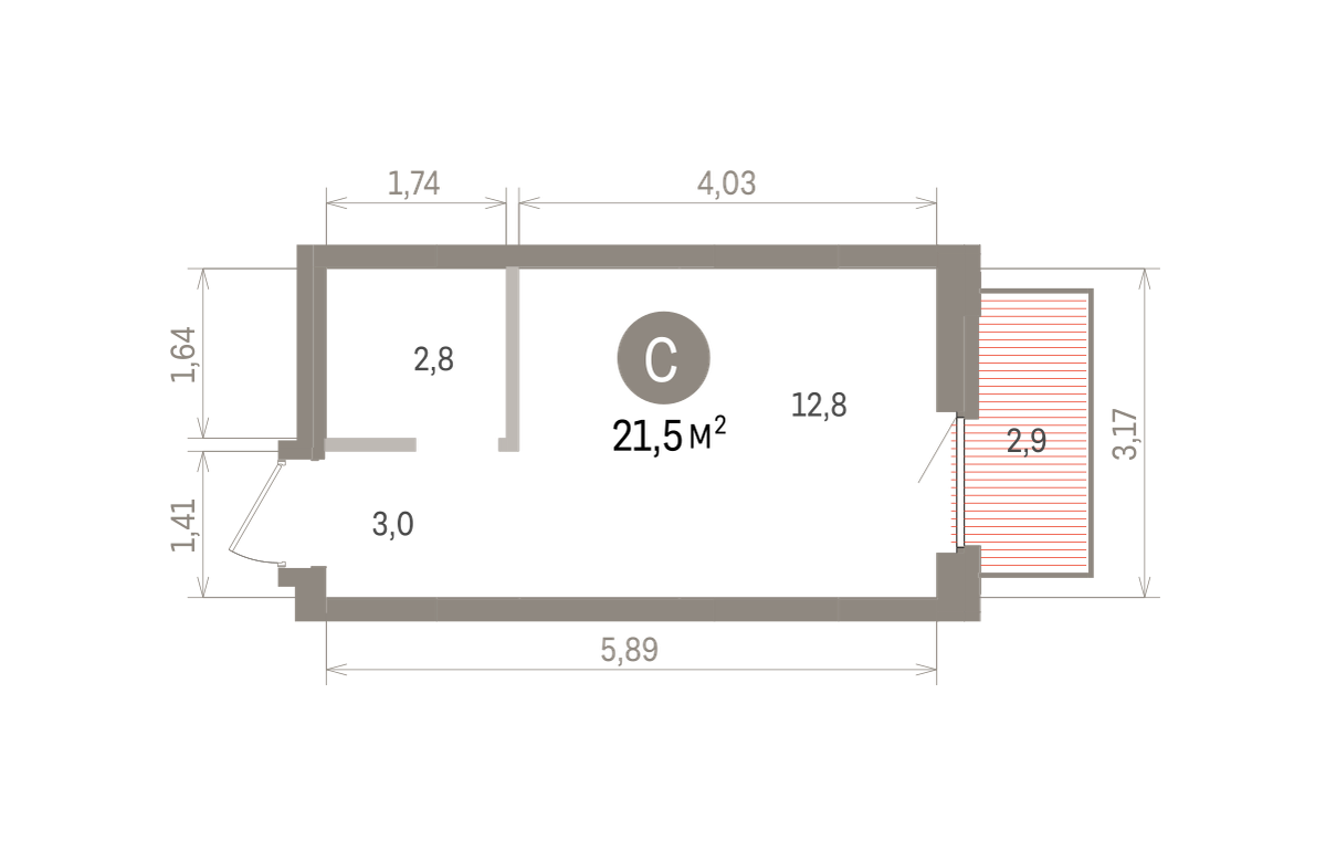 Студия в квартале «Депо». Особенности планировки: балкон, предчистовая отделка. № квартиры в нашей базе: ДЕП07-Ж3.6.5.