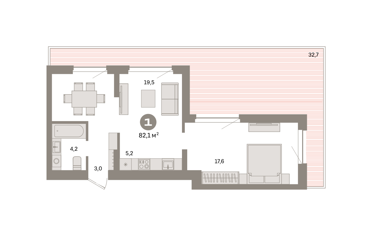 Продаётся с кладовой. Квартира с кухней-гостиной и одной спальней в квартале «Депо». Особенности планировки: предчистовая отделка, терраса на крыше. № квартиры в нашей базе: ДЕП07-Ж3.7.3.
