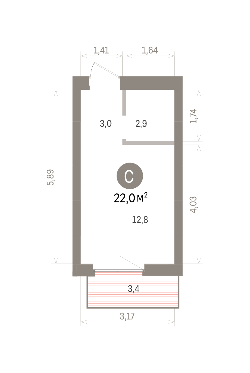 Студия в квартале «Депо». Особенности планировки: балкон, предчистовая отделка. № квартиры в нашей базе: ДЕП07-Ж6.7.3.