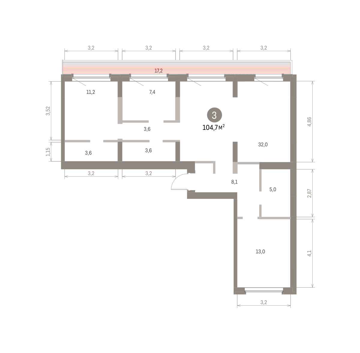 Квартира с кухней-гостиной и тремя спальнями в Бруснике в Академическом. Особенности планировки: вид во двор, второй санузел, мастер-спальня, постирочная, предчистовая отделка, разнесённые спальни, терраса на крыше.