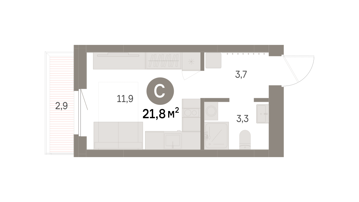 Студия в районе Шишимская горка. Особенности планировки: балкон, предчистовая отделка. № квартиры в нашей базе: ШГР06-Ж4.5.4.