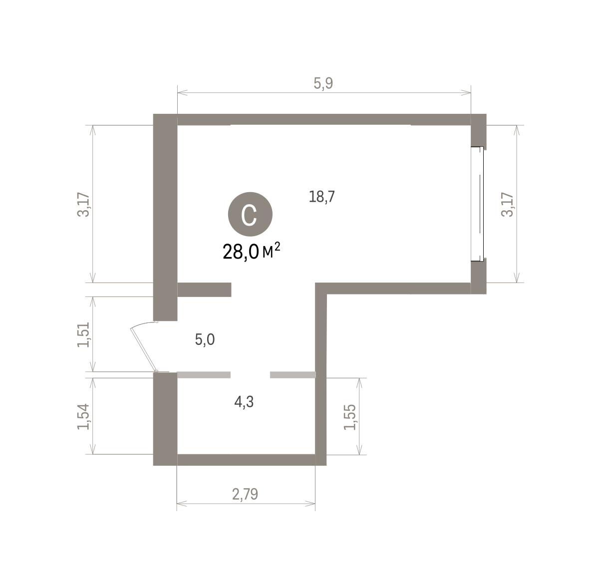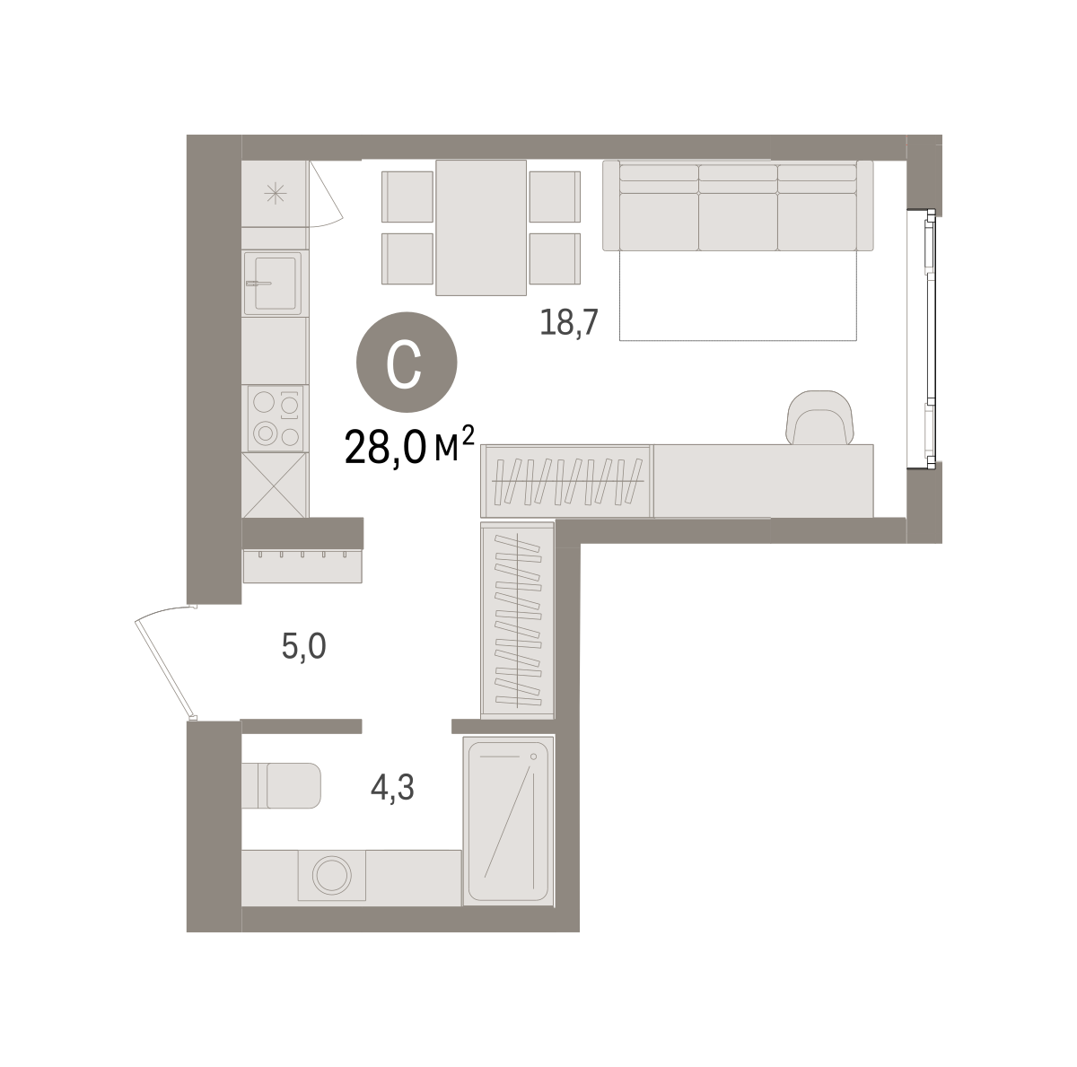 Студия в квартале «Траектория». Особенности планировки: потолки 3 м и выше, предчистовая отделка. № квартиры в нашей базе: МНВ01-Ж2.2.3.