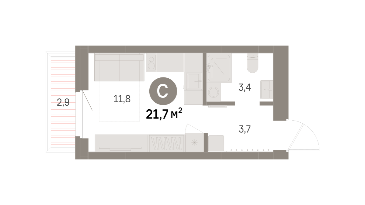 Студия в районе Шишимская горка. Особенности планировки: балкон, предчистовая отделка. № квартиры в нашей базе: ШГР06-Ж5.4.3.
