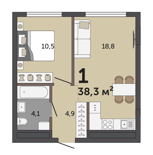 38.30 м² | 17 - 30 эт.