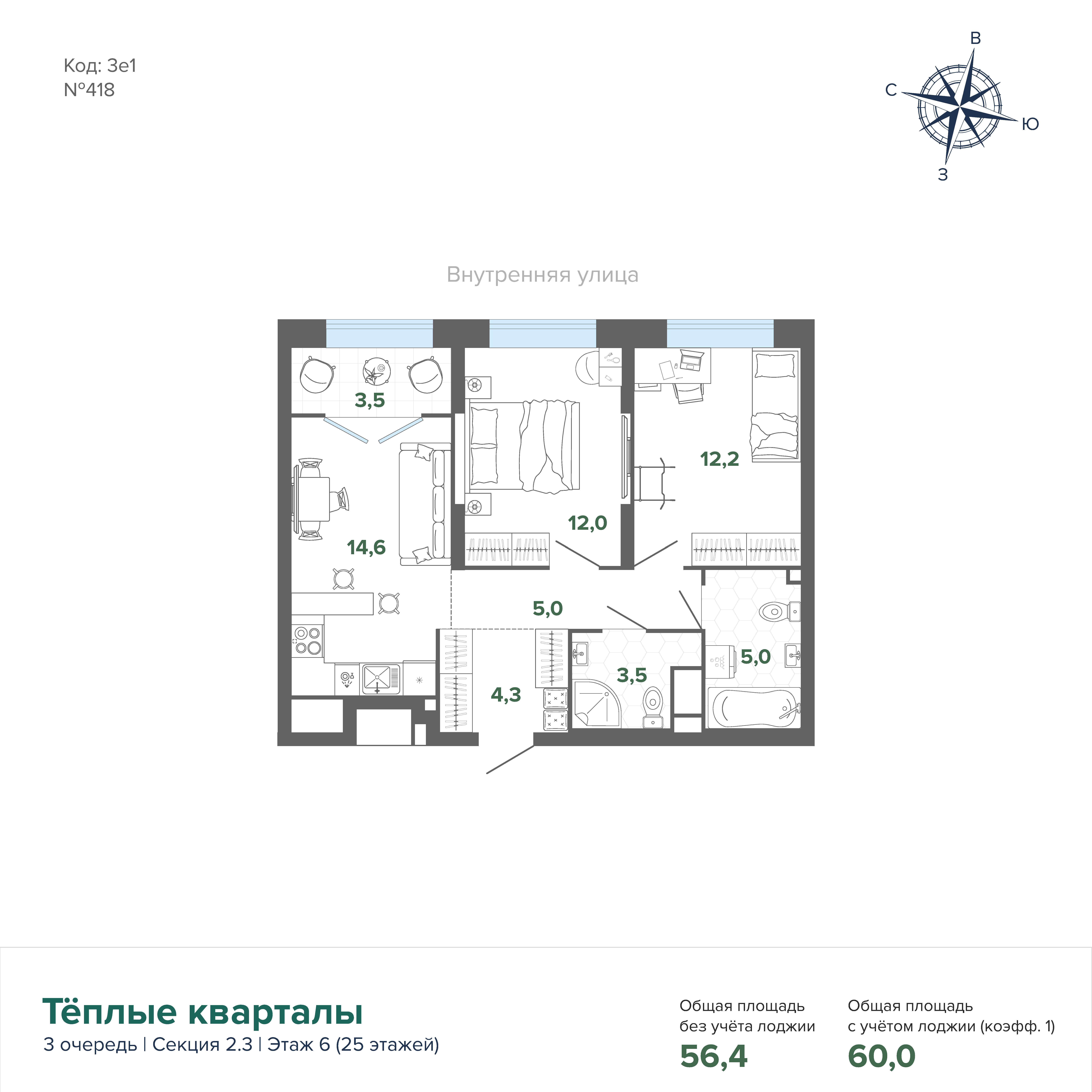 <p>Современный семейный ЖК "Теплые кварталы" - новый жилой комплекс повышенной комфортности на границе Втузгородка и Пионерского района (перекресток ул. Блюхера/Студенческая).<br>Теплые кварталы для тех, кто думаете о комфорте своем и близких.<br>Срок сдачи дом 2 (3 очередь) - 2026 год. Материнский капитал при покупке использовать можно.<br>Теплые кварталы - квартальная застройка переменной этажности (от 7 до 25).Комплекс будет состоять из 5 очередей. В продаже 3 очередь, дом 2 - переменной этажности. Строительство уже ведется.<br>Преимущества комплекса:<br>- Качественная чистовая отделка позволит сразу заехать в новую квартиру, взять паузу для накопления средств на ремонт или сдать жилье в аренду без дополнительных капитальных вложений.- Собственная котельная – горячая вода и отопление в любое время года по потребности жильцов!Зеленый двор без машин!- Дворы очередей соединены сквозными проходами – создается единое пространство. Шумные и тихие зоны отделены друг от друга. Уютная и камерная атмосфера двора напоминает отдых за городом. Вдали от шумных улиц мегаполиса.- Подземный паркинг с лифтом до жилого этажа. - Кладовые на «-1» этаже.- Безбарьерная среда на всей территории комплекса- Одни из лучших школ города по прописке: Гимназии 43, 47 и 108; Лицей 130<br>Окружение:<br>- Рядом три топовых ВУЗа: Гуманитарный Университет, Юридический Университет, УрФУ, а также СУНЦ УрФУ;- Близость озера Шарташ, Основинского парка и Дендрария располагают к ежедневным прогулкам;- Рядом с кварталом расположен ЦК Урал, где все виды спортивного и творческого развития: бассейн, футбольное поле, кружки, секции для детей и взрослых- Поблизости ТРЦ Парк Хаус и Апельсин: кинотеатр, фитнес-центр, рестораны и популярные магазины.- У дома остановки трамвая и автобуса. - Для автомобилистов - удобный выезд как в центр, так и на объездную дорогу.<br>О доме:<br>- Механическая вентиляция - круглогодичная бесперебойная работа вентиляции!- Дизайнерская отделка холлаКолясочная в холле- Эргономичные планировки с максимальным полезным пространством: квартиры с мастер-спальнями; удобное зонированием на кухню и гостевую зону в кухне-гостиной; ниши для шкаф-купе и гардеробные в прихожих; окна на 2 и 3 стороны в многокомнатных квартирах- Качественная чистовая отделка: Ламинат 32 класса, обои под покраску, потолок обои, балконная дверь с остеклением, санузлы - умывальник со смесителем, унитаз. Счетчики на э/э, воду и тепло ежемесячная экономия на коммунальных платежах;- Горизонтальная разводка систем отопления свободные стены.</p>