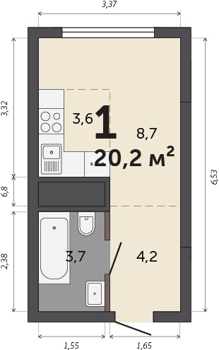 20.20 м² | 24 - 30 эт.