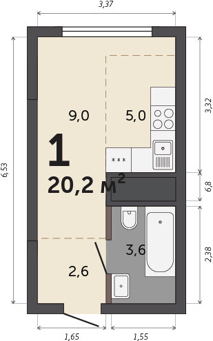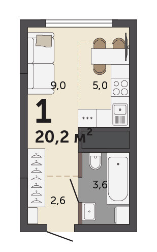 20.20 м² | 26 - 30 эт.