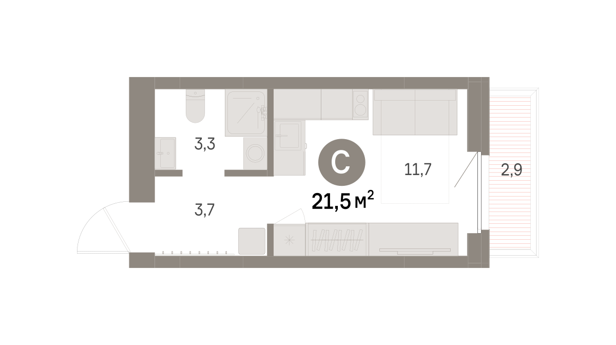 21.00 м² | 7 - 9 эт.