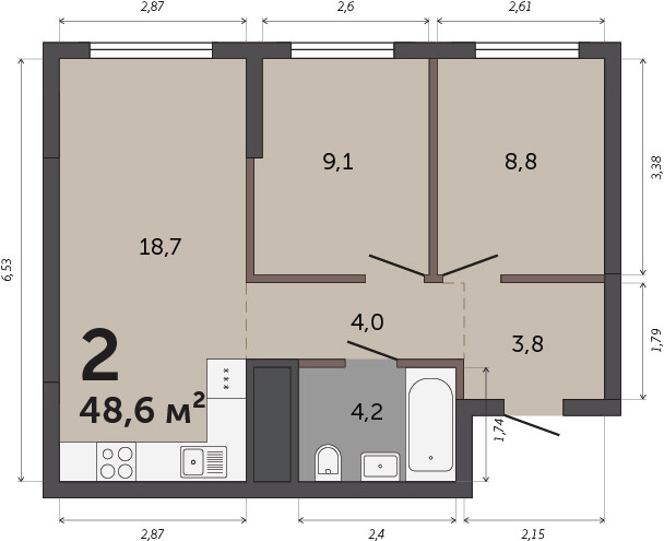 49.30 м² | 26 - 30 эт.
