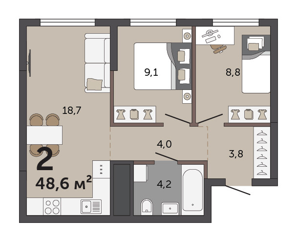 48.60 м² | 17 - 30 эт.