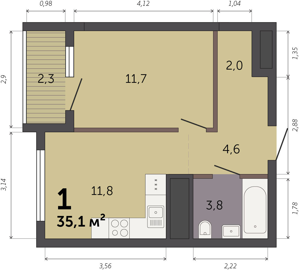 35.10 м² | 27 - 32 эт.
