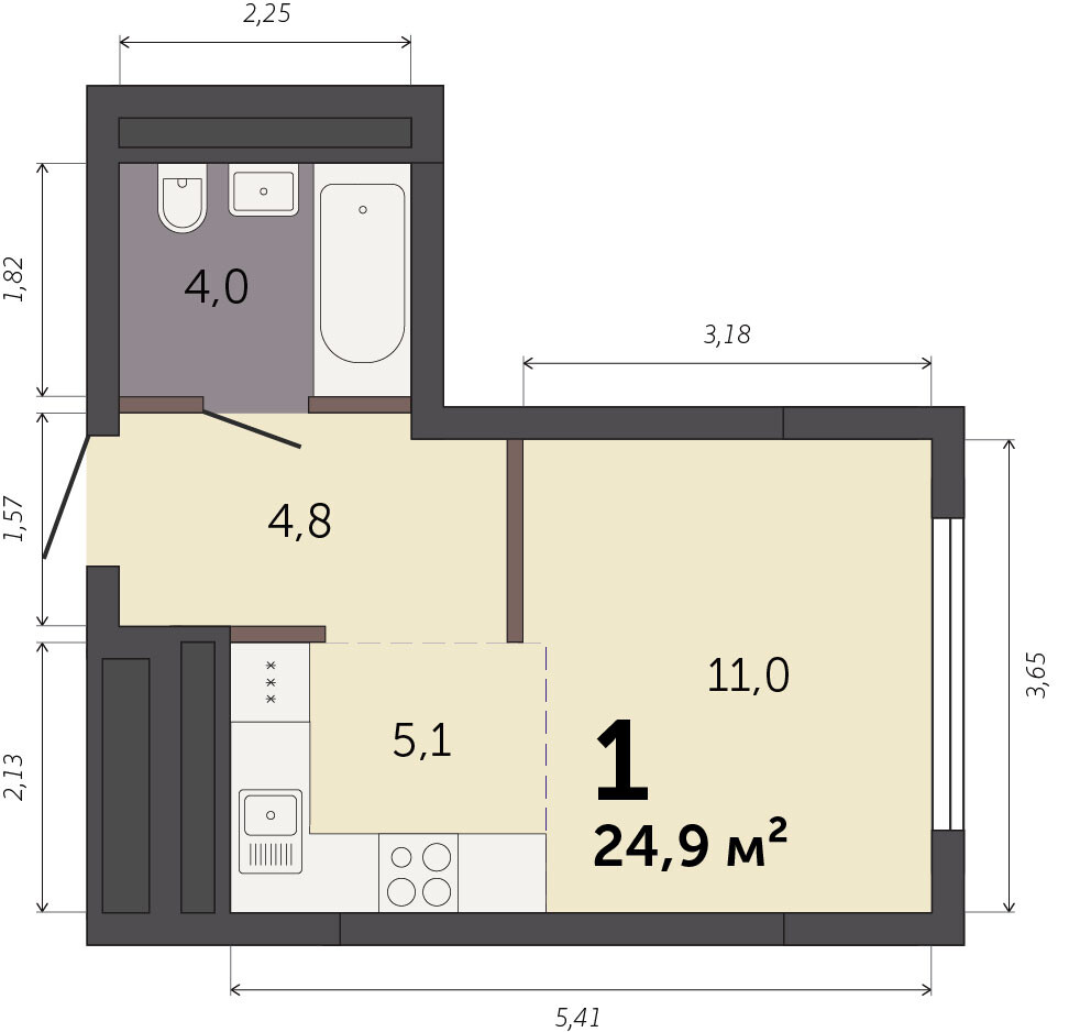24.90 м² | 27 - 32 эт.
