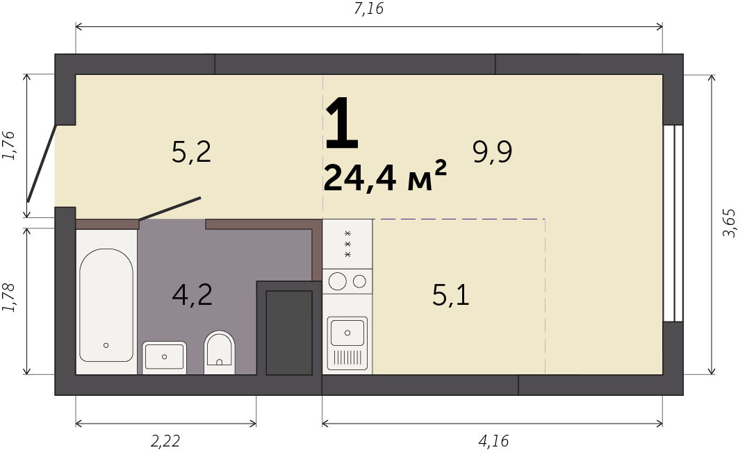 22.20 м² | 22 - 25 эт.