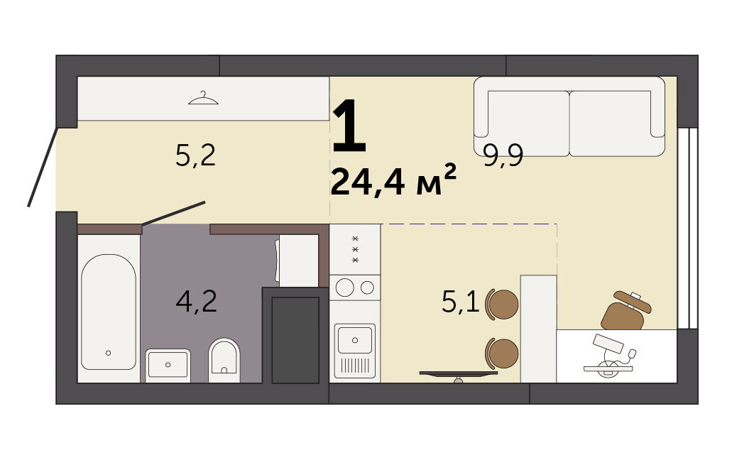 24.00 м² | 26 - 32 эт.
