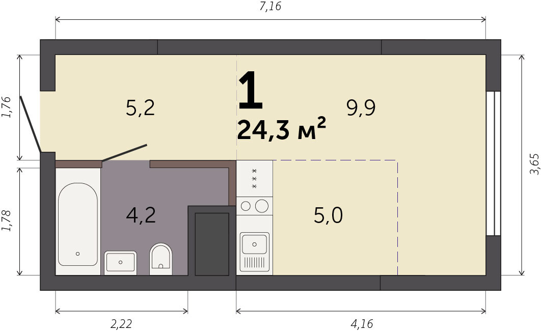 22.20 м² | 22 - 25 эт.
